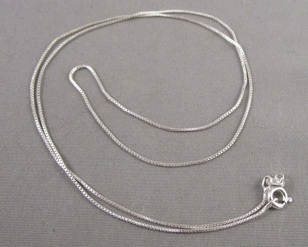 This listing is for a solid Sterling Silver box chain (0.5mm) stamped 925. Length 18"