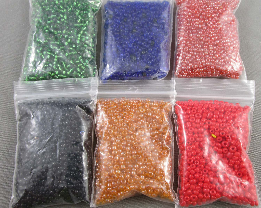 This listing is for a selection of various colored glass seed beads. Size is 11/0 Bags weight approx 15 grams each except multi color which weighs 50 grams