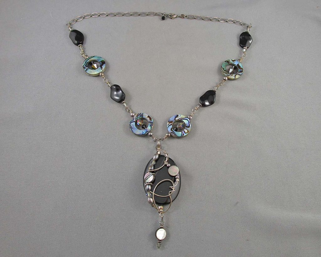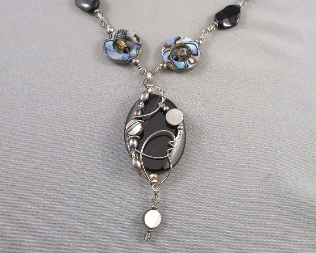 This listing is for an Agate & Abalone pendant necklace. You will receive the exact necklace pictured. Measurement 19"