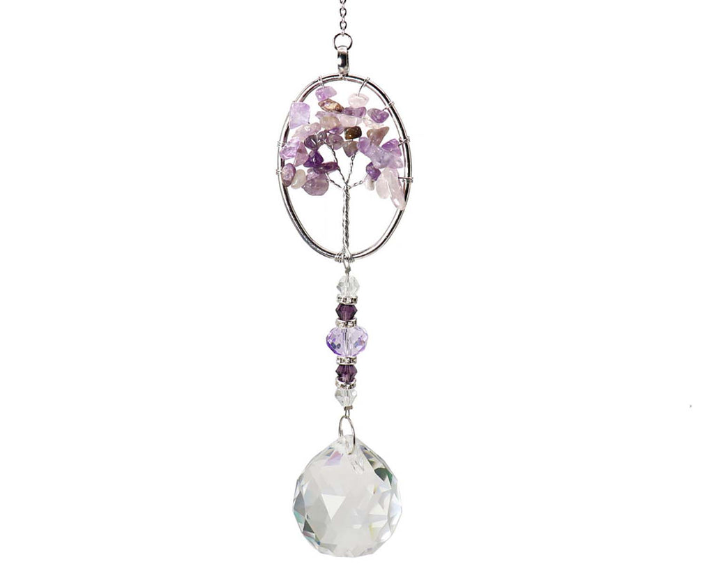 This listing is for a beautiful Amethyst tree prism sun catcher. Length 15"