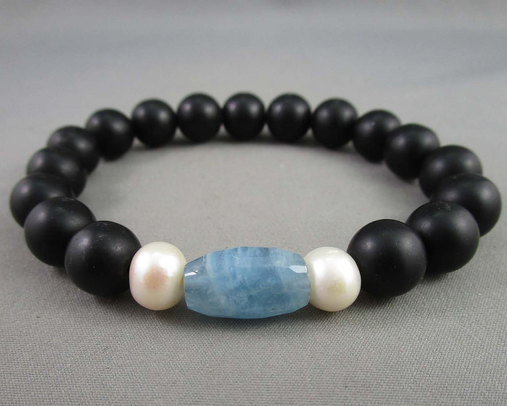 This listing is for Aquamarine and Pearl gemstone bracelet. Bracelet measurement 8"
