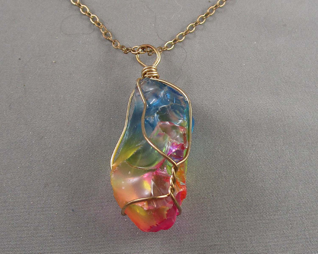 This listing is for a pretty Aura Quartz crystal necklace. You will receive the exact necklace pictured. Pendant measurement: 2" x .75". Chain measurement 22"
