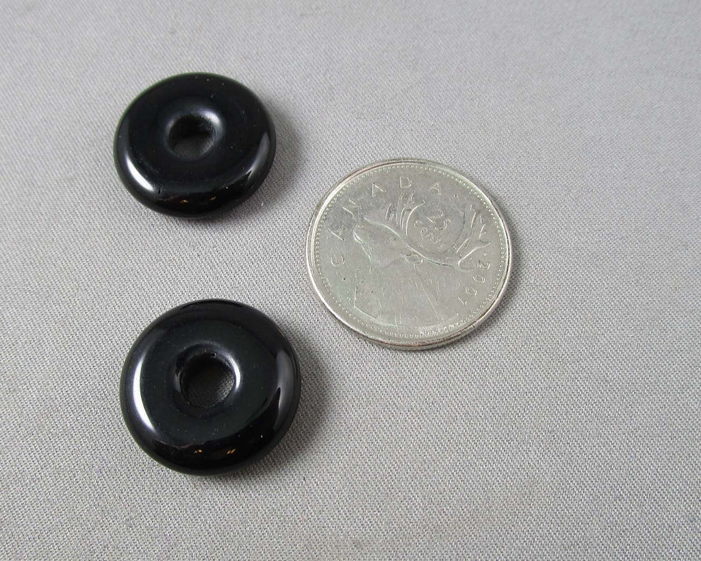 This listing is for a black Obsidian donut / PI disc bead pendant. Measurement 18mm