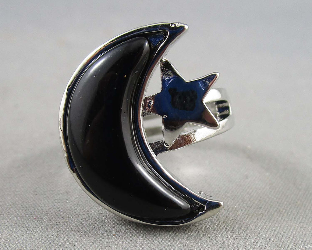 This listing is for a black Obsidian moon and star ring. Resizable 7 to 9