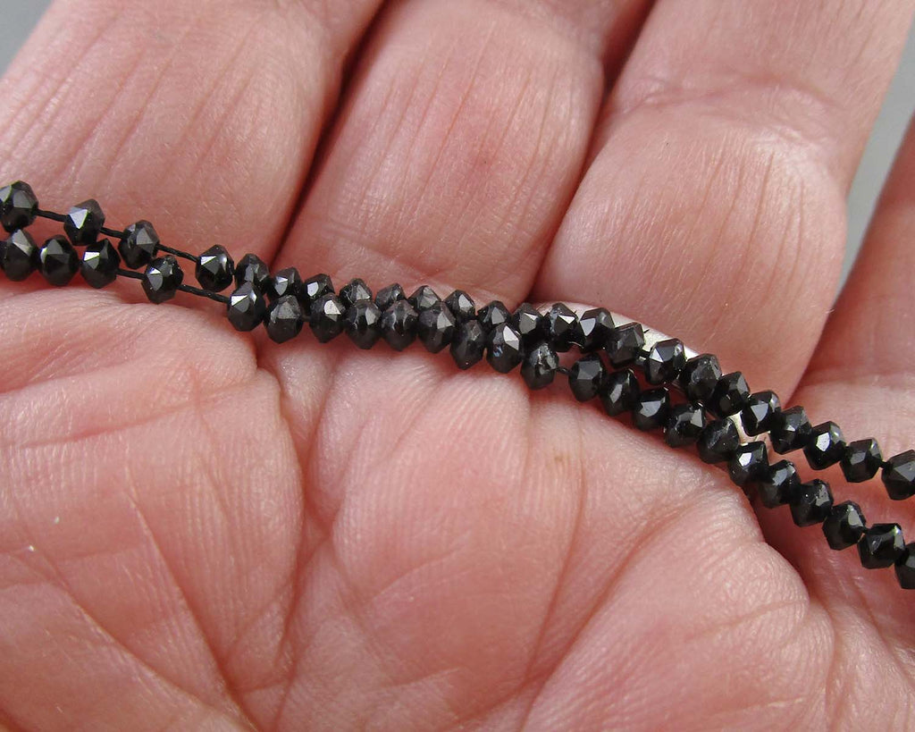This listing is for a 3.5" strand of Black Tourmaline 3mm bicone beads.