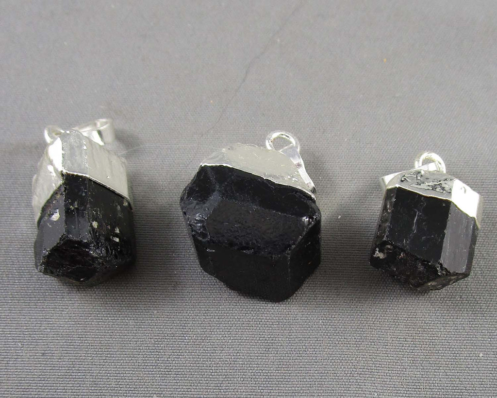 This listing is for a raw Black Tourmaline pendant. As each stone is natural, every piece is perfectly unique! Pendants measure between .75" - 1" (Size and shape vary).