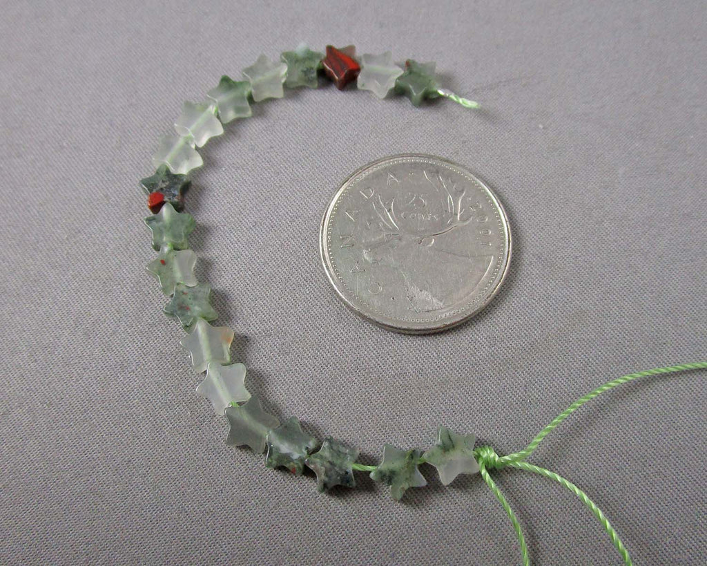 This listing is for a 3.5" strand of star shaped Bloodstone beads 6mm.