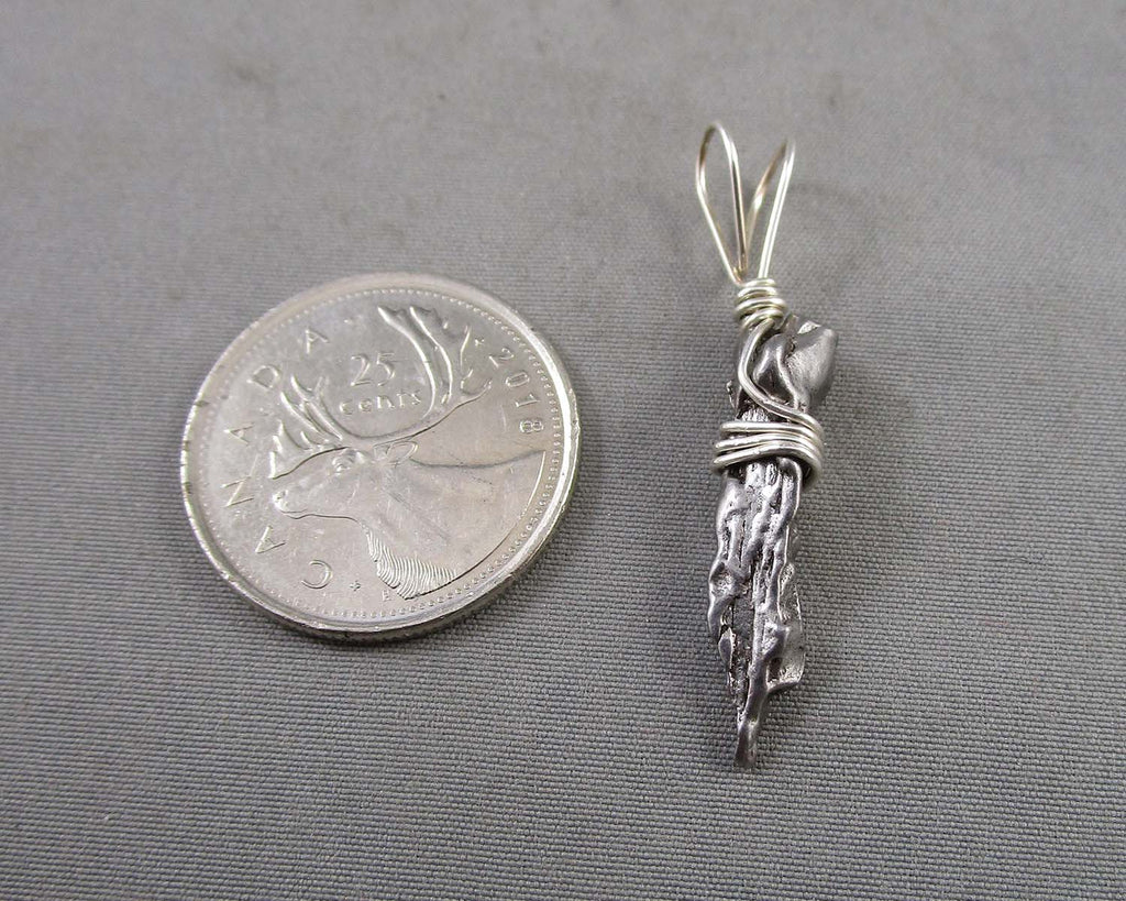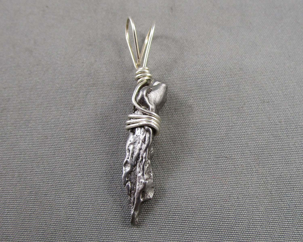 This listing is for an authentic Campo del Cielo Meteorite pendant wrapped in 925 Sterling Silver. You will receive the exact pendant pictured. Measurement 1.5" x .25" x 0.25" Weight 2.4 grams