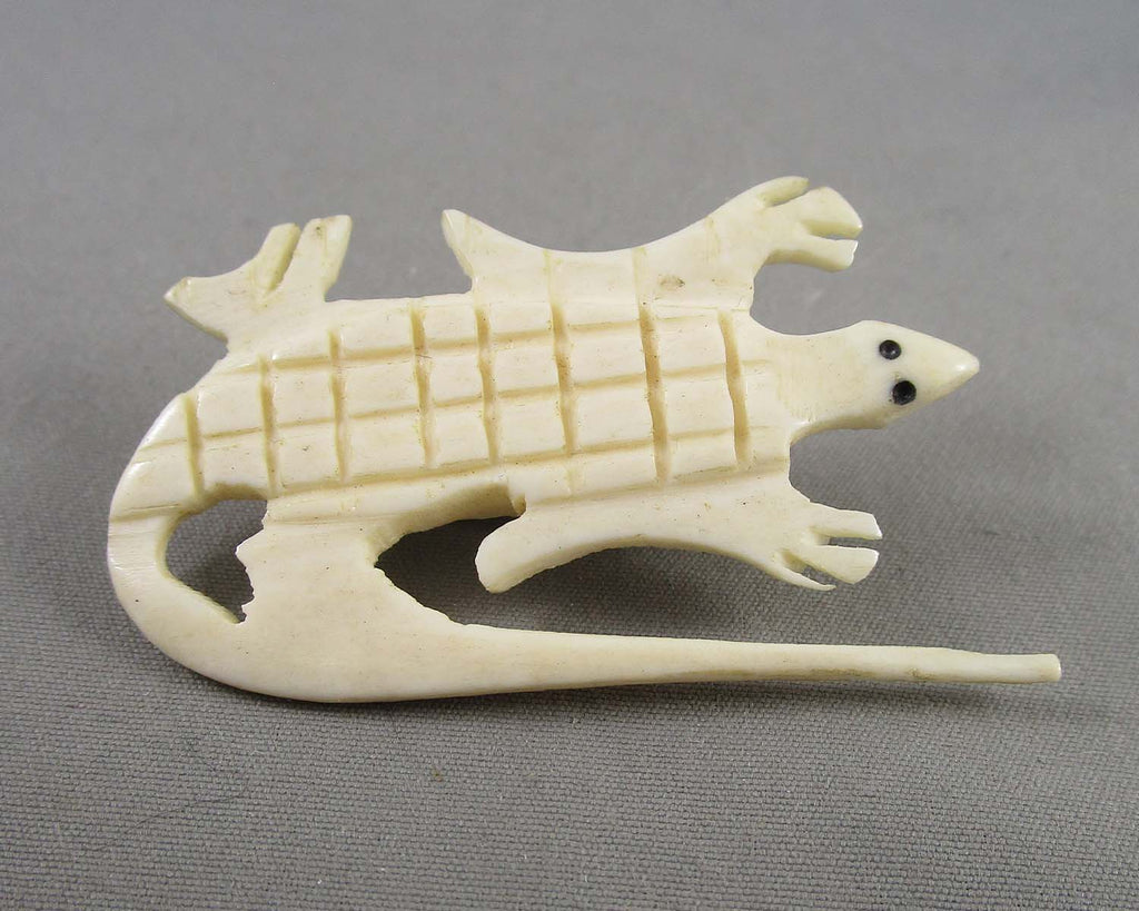 This listing is for a carved bone lizard brooch. Measurement 2" x 1"