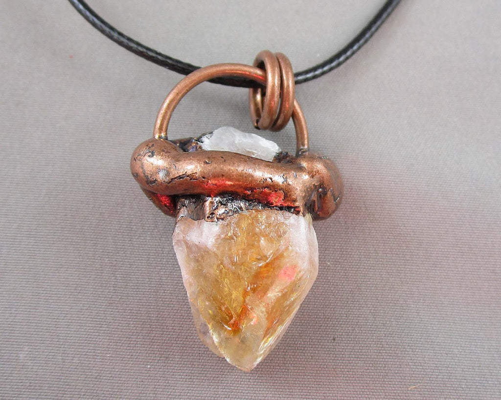 This listing is for a natural Citrine pendant necklace. Red copper - cord length 18" to 20"