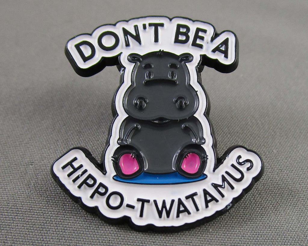 This listing is for a hippo enamel pin that says "Don't be a hippo-twatamus"