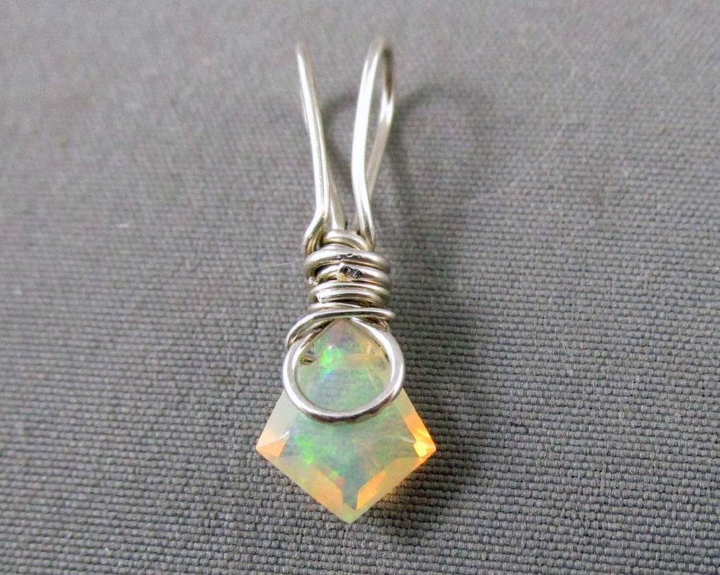 This listing is for a super pretty Ethiopian Opal gemstone pendant wrapped in 925 Sterling Silver wire. You will receive the exact pendant pictured. Measurement 7/8" x 0.25"