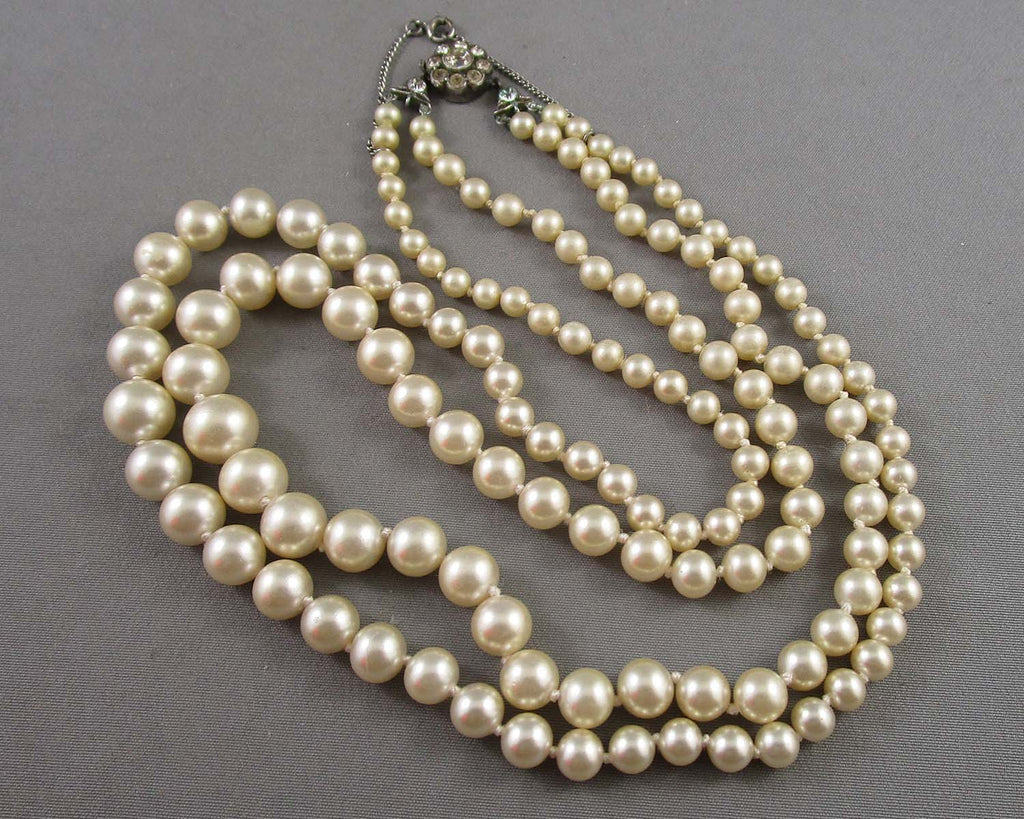 This listing is for a individually knotted faux Pearl necklace stamped SCP England. You will receive the exact necklace pictured. Measurement 18"