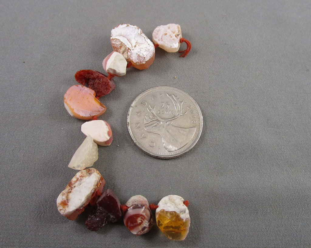 This listing is for a 3.5" strand of raw Fire Opal nugget beads. The beads measure approx 9 - 17mm.