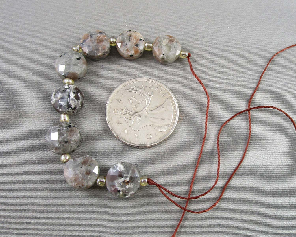 This listing is for a 3.5" strand of faceted flat round 10mm fluorescent Sodalite Syenite beads.