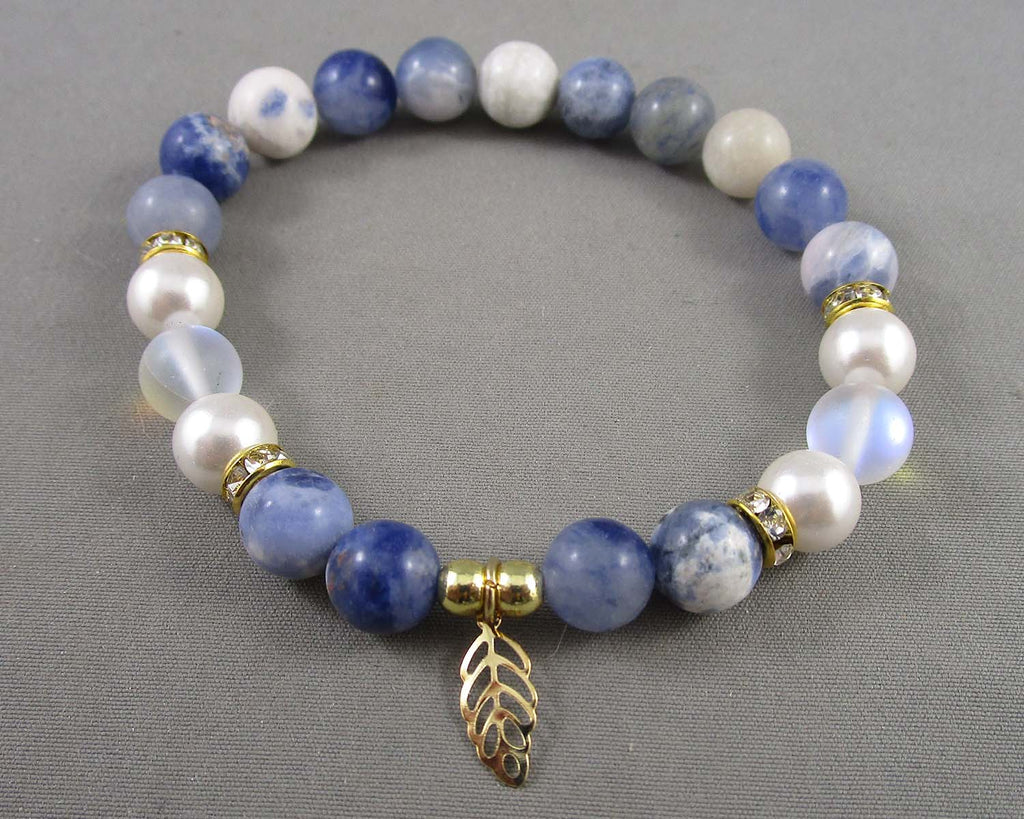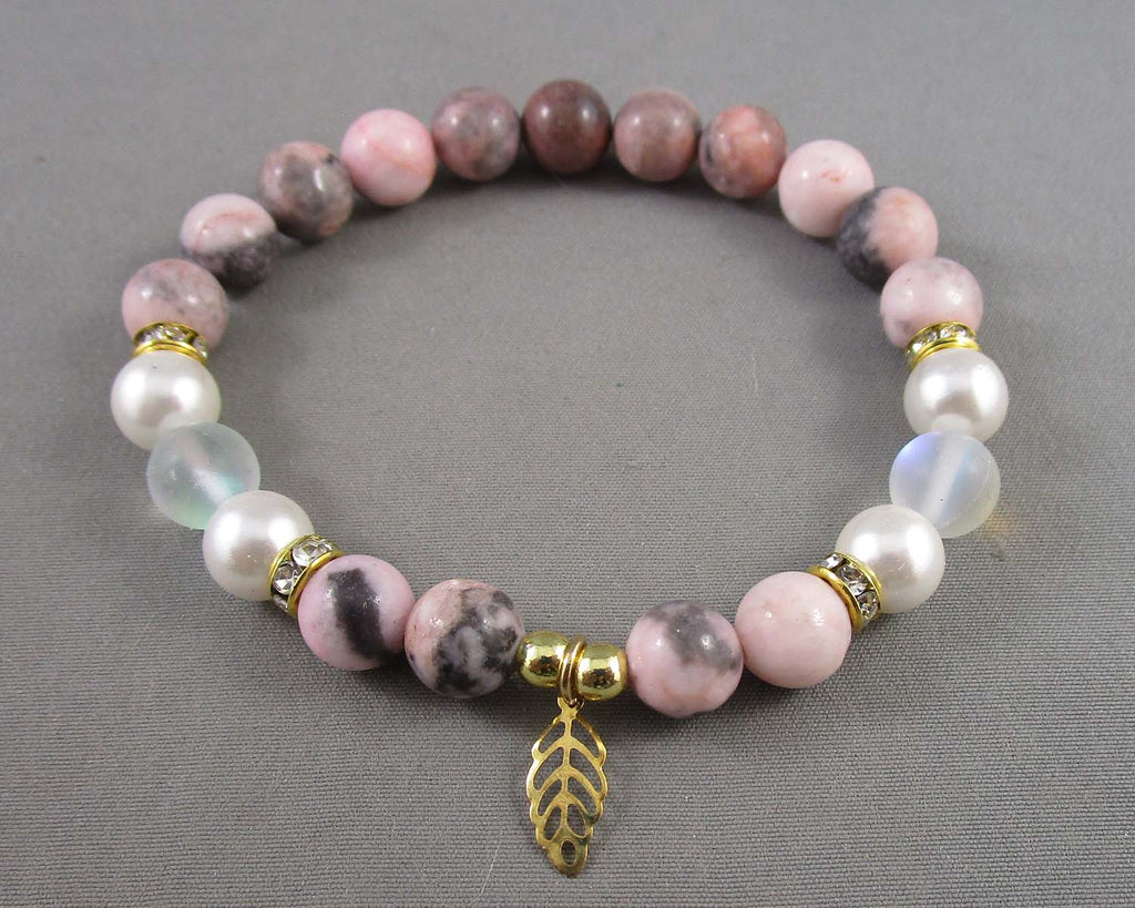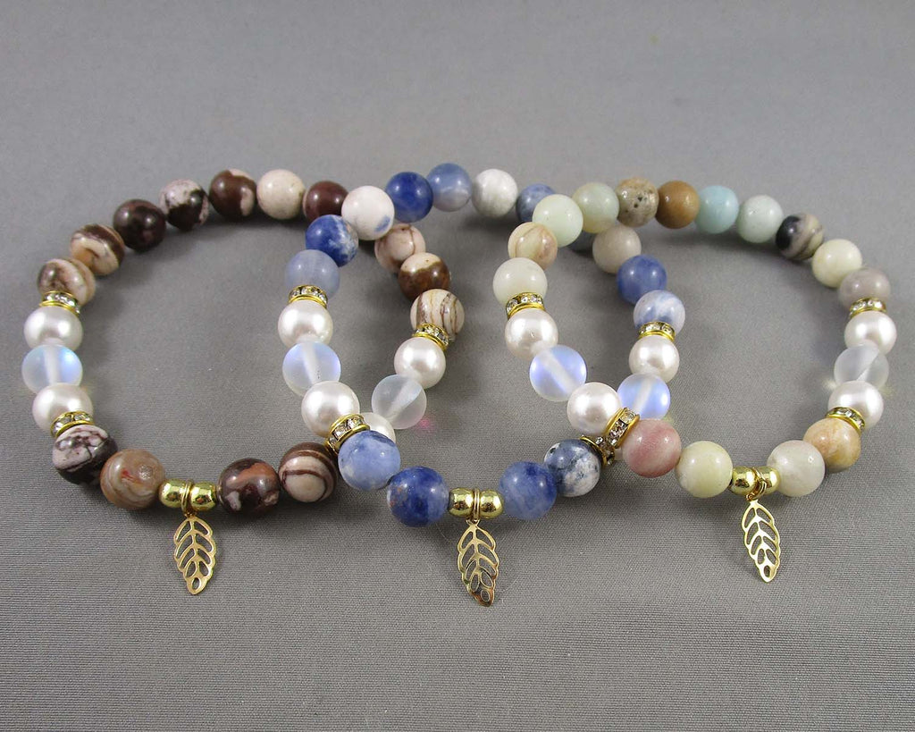 This listing is for a 8mm gemstone with leaf charm (you choose the gemstone). Measurement 7.5"