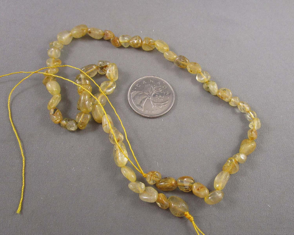 This listing is for a 15" strand of nugget shaped golden Rutilated Quartz beads. Size range 5mm to 10mm
