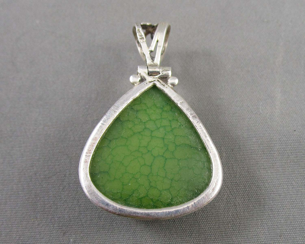 This listing is for a green Quartz druze gemstone pendant (dyed). You will receive the exact pendant pictured. Stamped 925 Sterling Silver. Pendant measurement: 1.5" x 1" (3.8cm x 2.5cm).