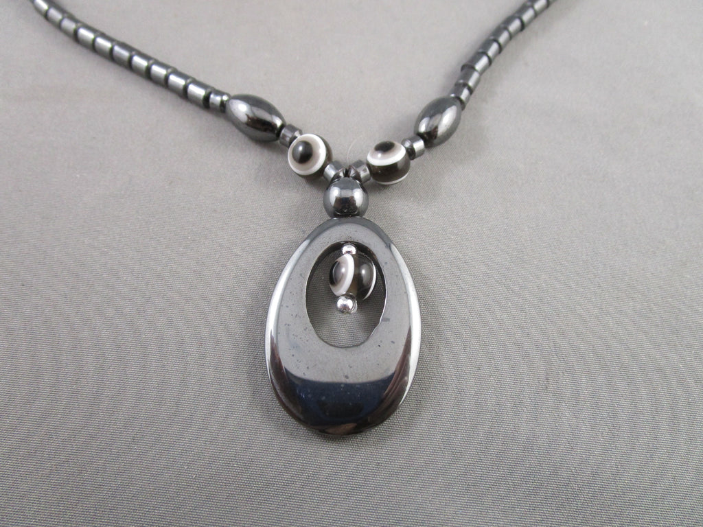 This listing is for a Hematite necklace. You will receive the exact necklace pictured. Measurement 18"