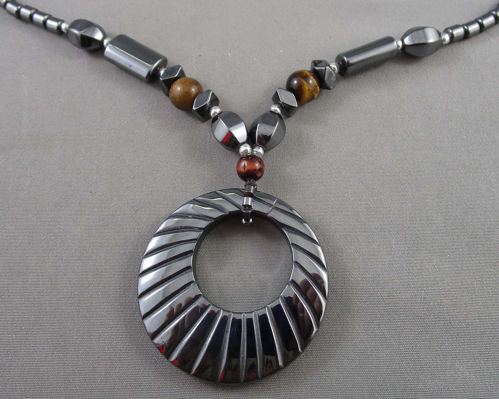 This listing is for a Hematite & Tiger Eye necklace. You will receive the exact necklace pictured. Measurement 18"