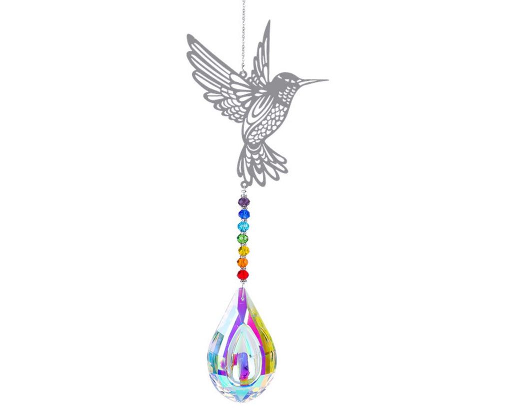 This listing is for a beautiful hummingbird prism sun catcher. Measurement 16.5" long.