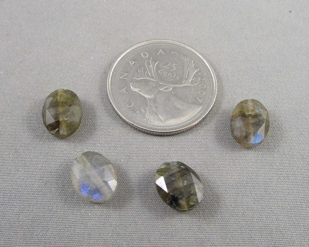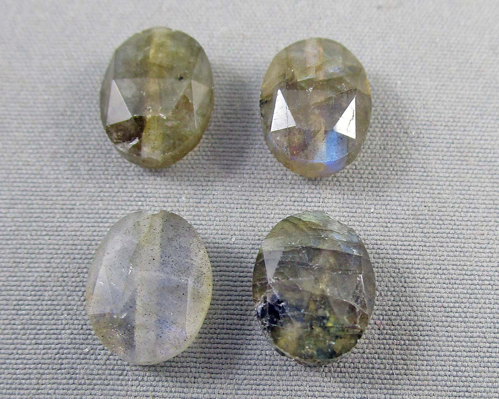 This listing is for 4 Labradorite faceted cabochons.Β Measurement 10mm x 8mm