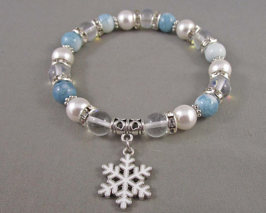 This listing is for a 8mm Mermaid glass with snowflake charm bracelet. Measurement 7.5"