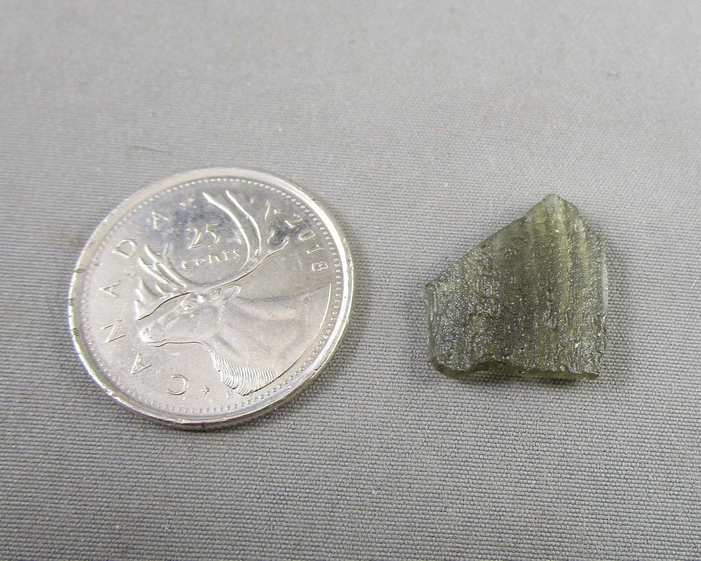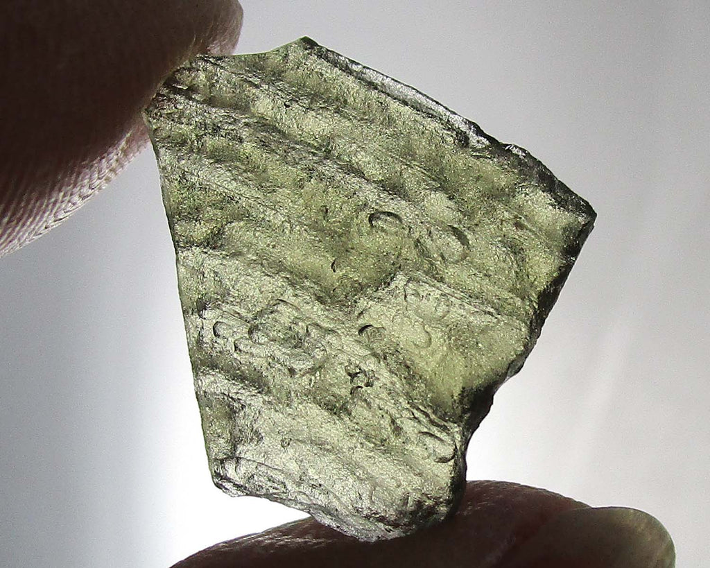 This listing is for an authentic Moldavite specimen from the Czech Republic. You will receive the exact crystal pictured. Measurement: 16mm x 15mm x 3mm. Weight: 1.01 grams. Gem jar is included.