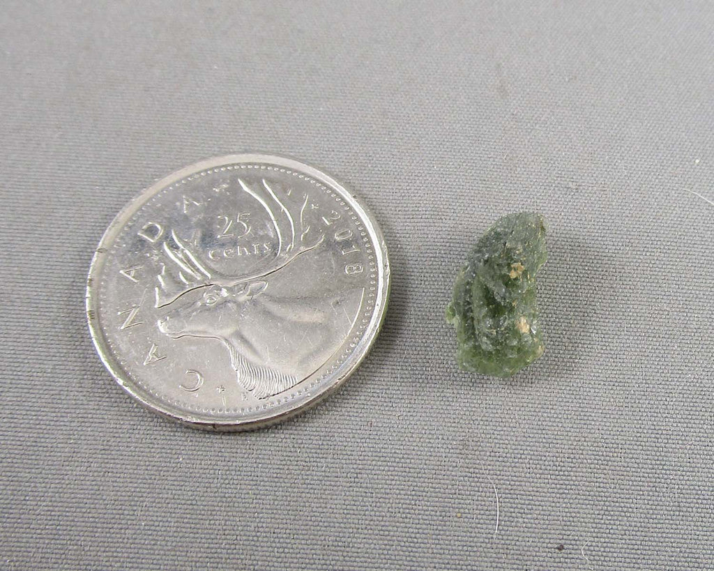 This listing is for an authentic Moldavite specimen from the Czech Republic. You will receive the exact crystal pictured. Measurement: 13mm x 8mm x 6mm. Weight: 0.70 grams. Gem jar is included.