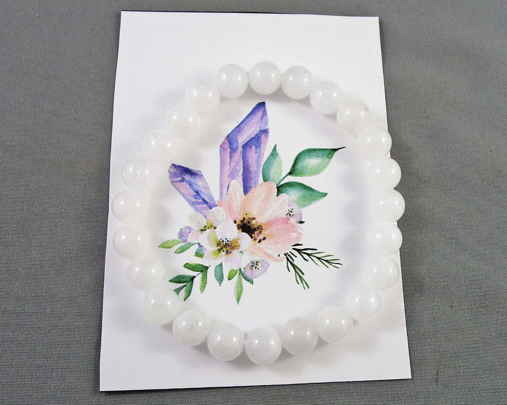 This bracelet has been created with 8mm Moonstone crystal beads. The bracelet measures approximately 7.5".