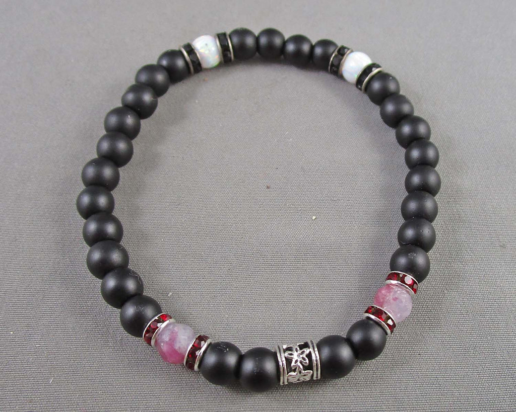 This is for a beautiful Pink Tourmaline & lab created Opal bracelet. Accented with 6mm matte black glass beads. Measurement 7.5"