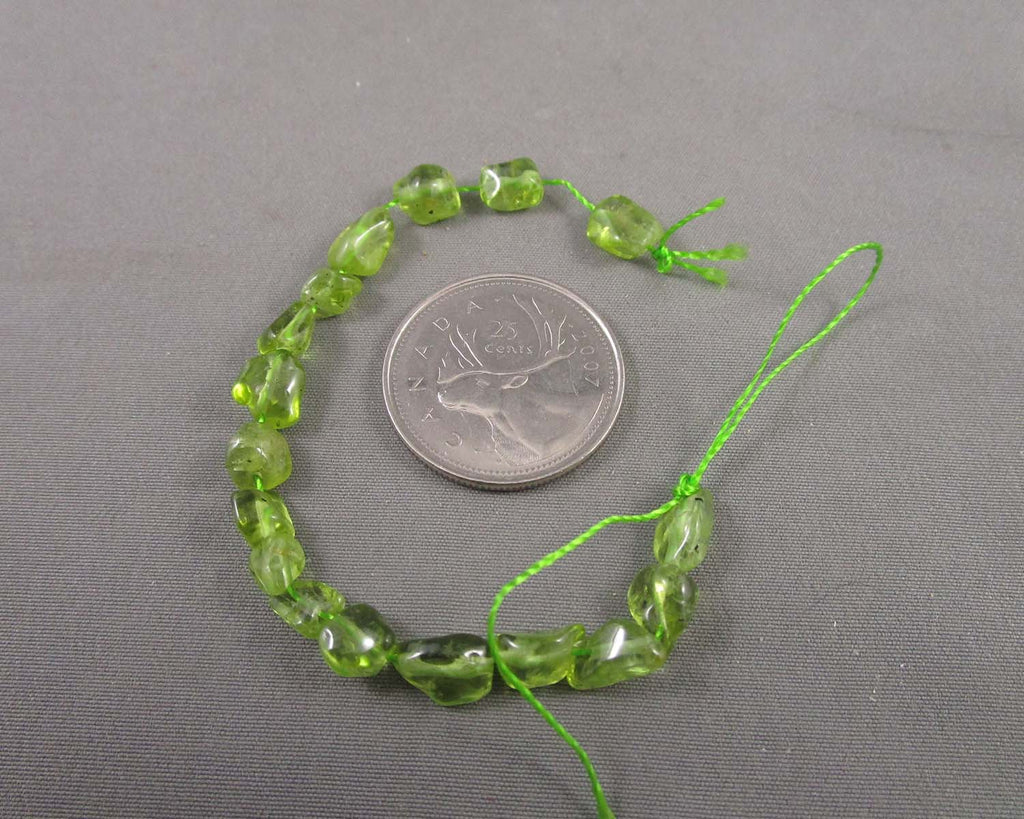 This listing is for a 3.5" strand of nugget shaped Peridot beads.Β Size range 5mm to 10mm