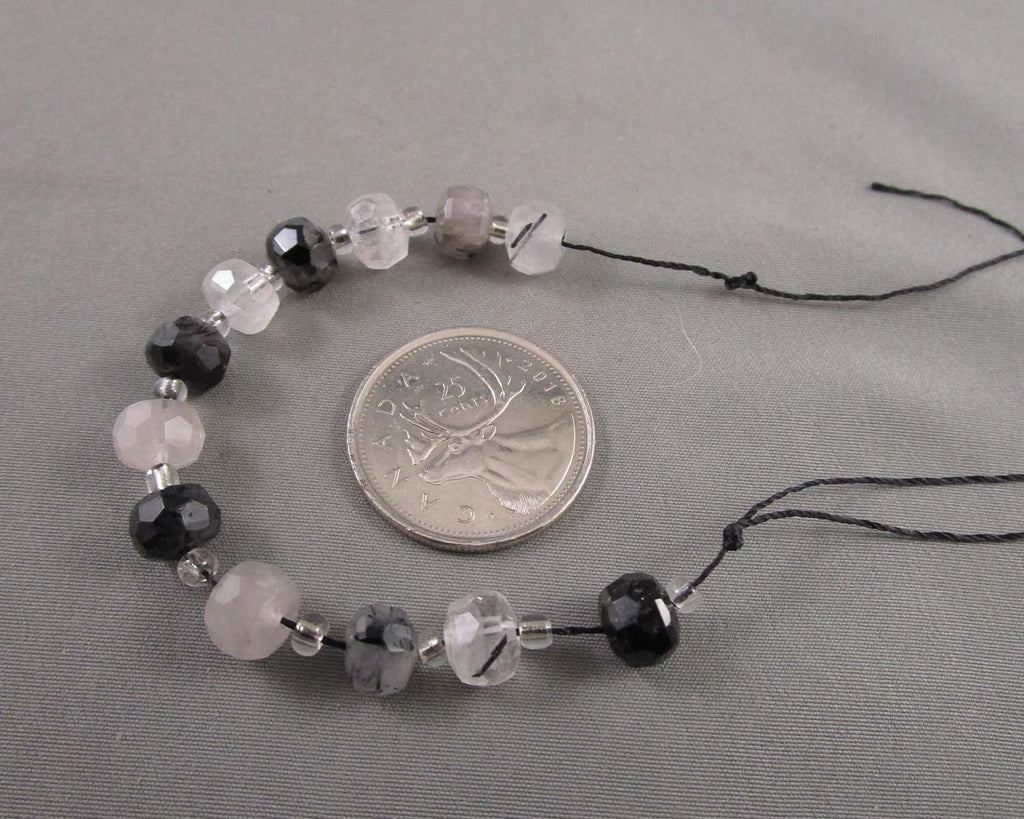 This listing is for a 3.5" strand of faceted premium Tourmaline in Quartz rondelle beads. Measurement: 8mm x 6mm