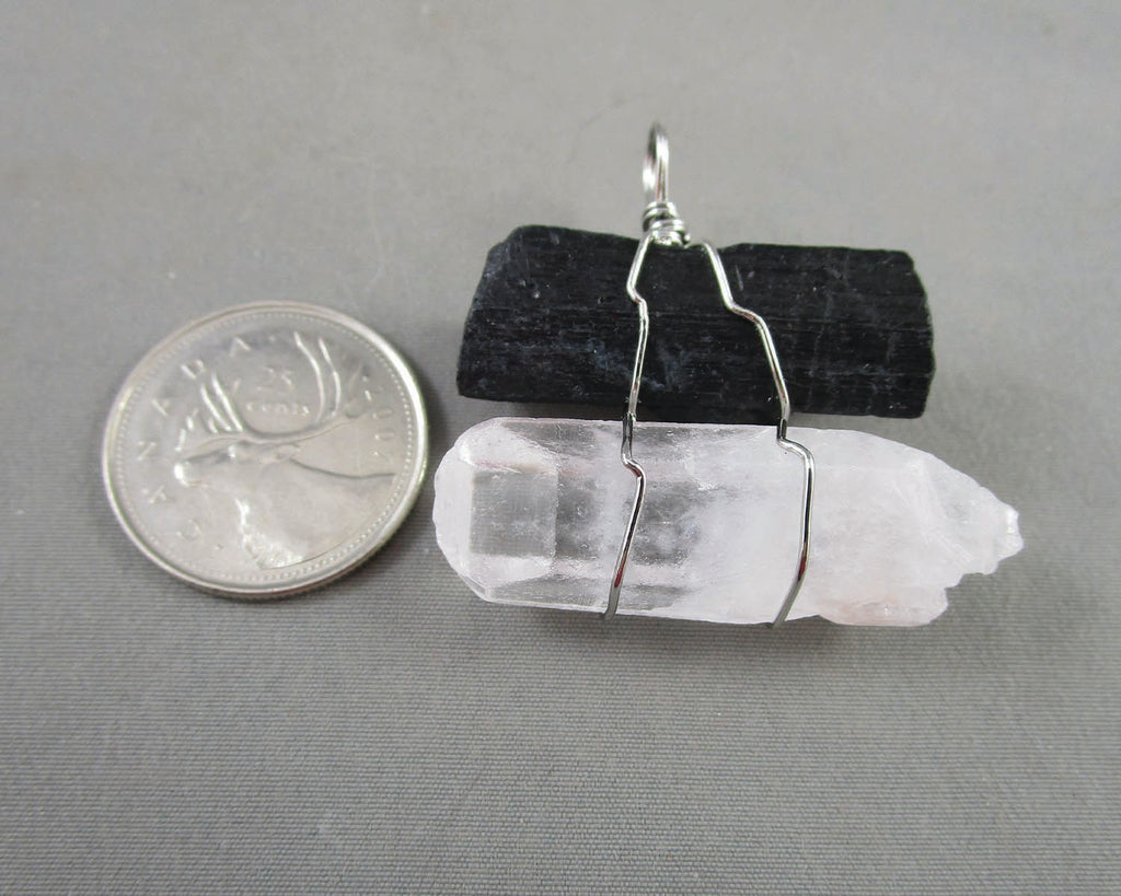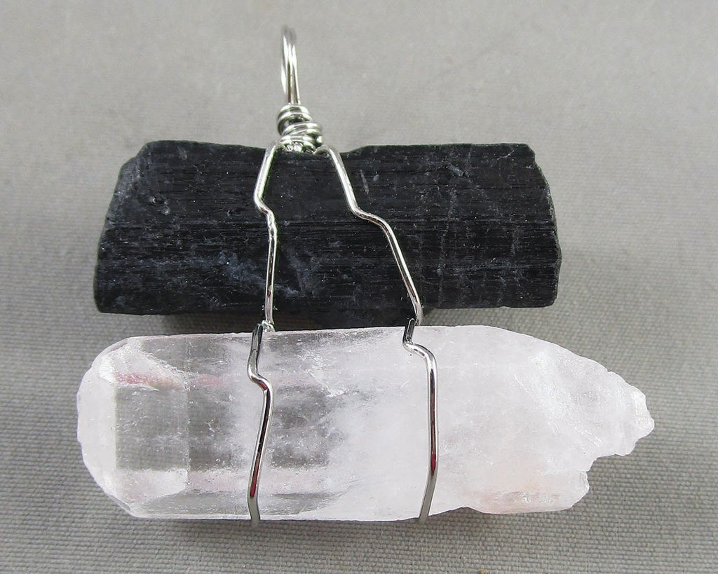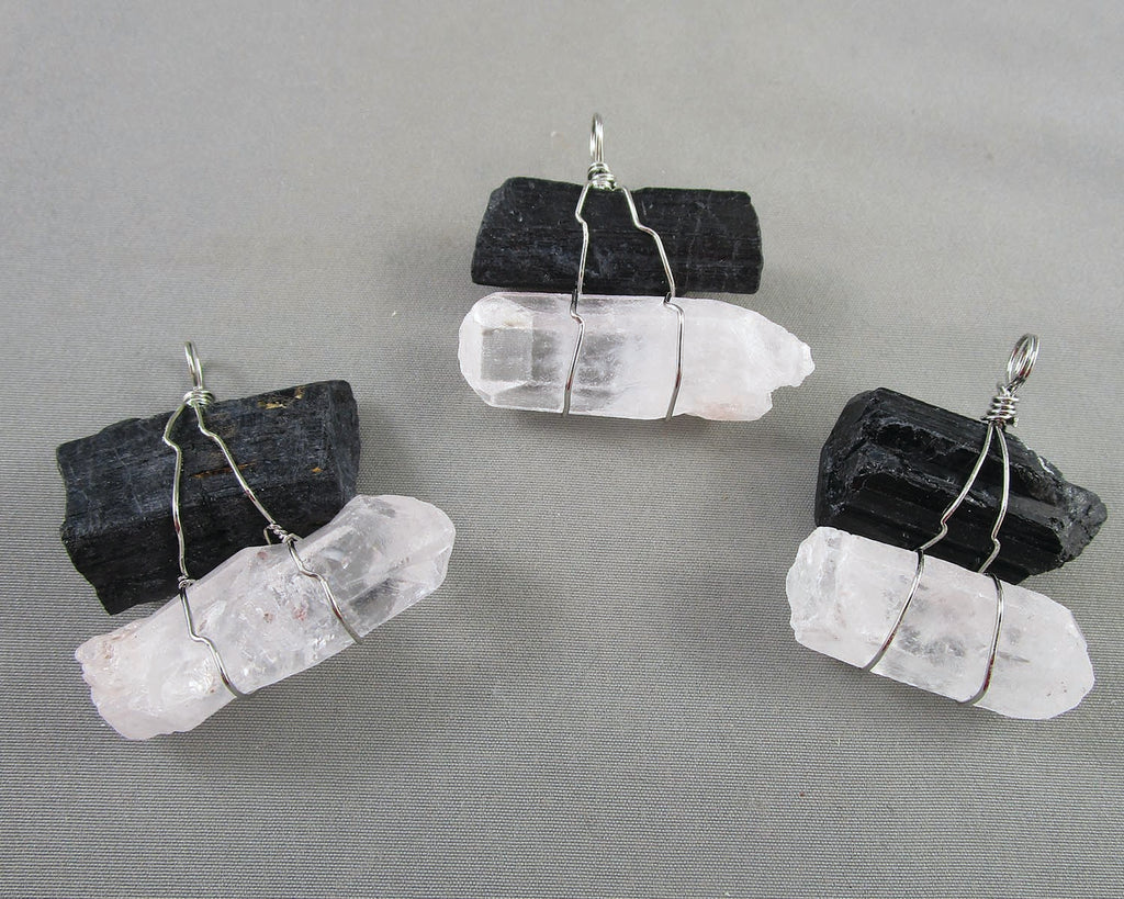 This listing is for a Quartz & Black Tourmaline gemstone pendant Approx measurement: 1.5" x 1.5"