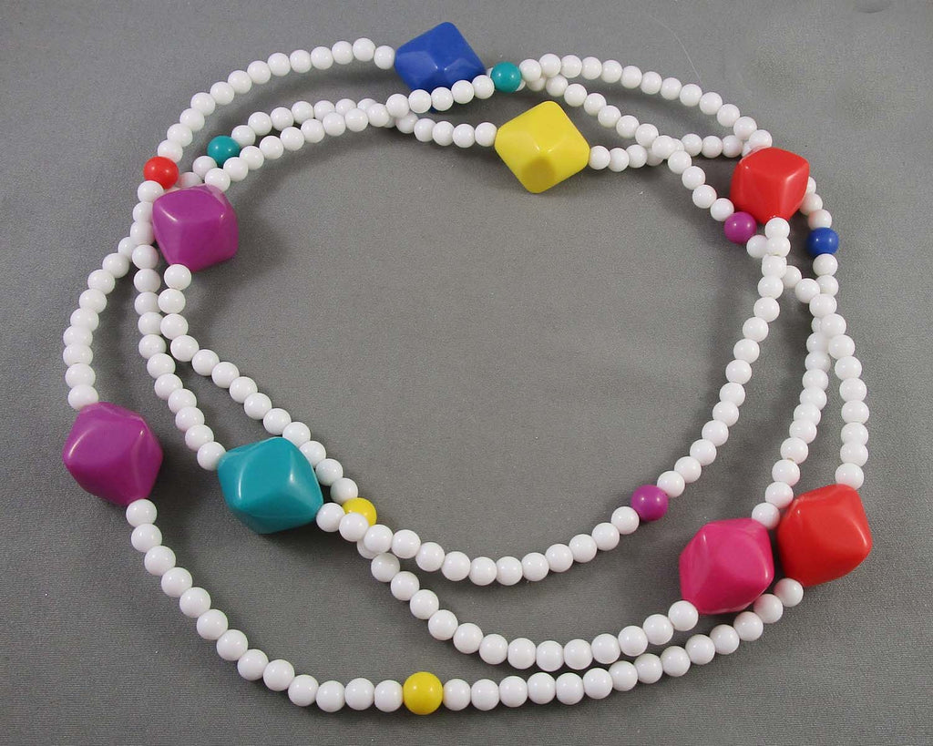 This listing is for an extra long vintage rainbow acrylic beaded necklace. Measurement 57"