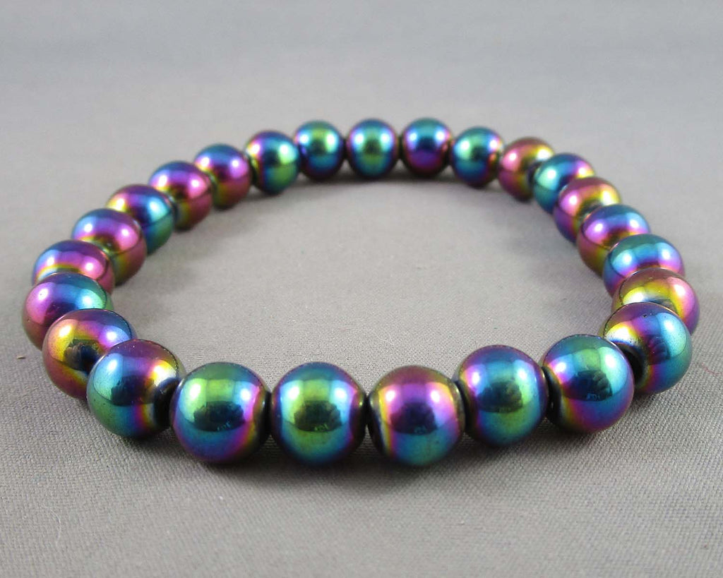 This listing is for a 8mm magnetic Rainbow Hematite gemstone bracelet. Measurement 7.5"