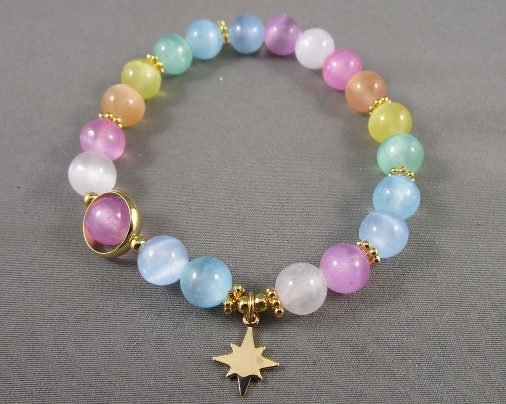 This listing is for a pastel Selenite gemstone bracelet with star charm. Measurement 7.5"