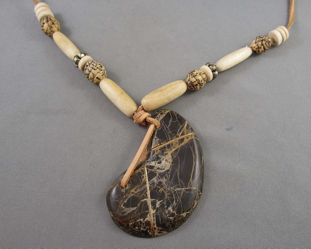 This listing is for a Septarian Dragonstone necklace. You will receive the exact necklace pictured. Pendant measures 2.75" x 1.5" - Leather necklace measures 36"
