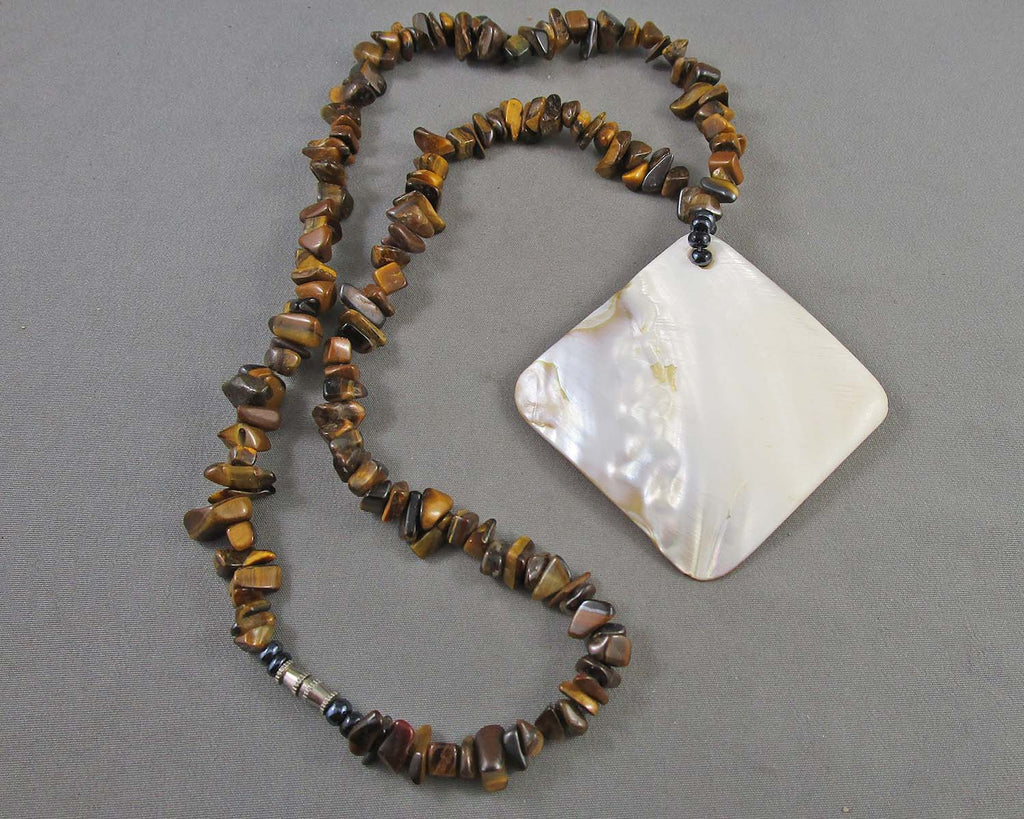This listing is for a shell & Tiger Eye pendant necklace. Measurement 19"