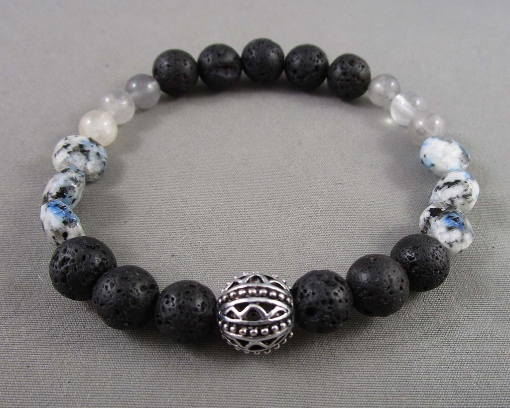 This listing is for a Smoky Quartz, K2 Jasper & Lava gemstone bracelet. Measurement 7.5"