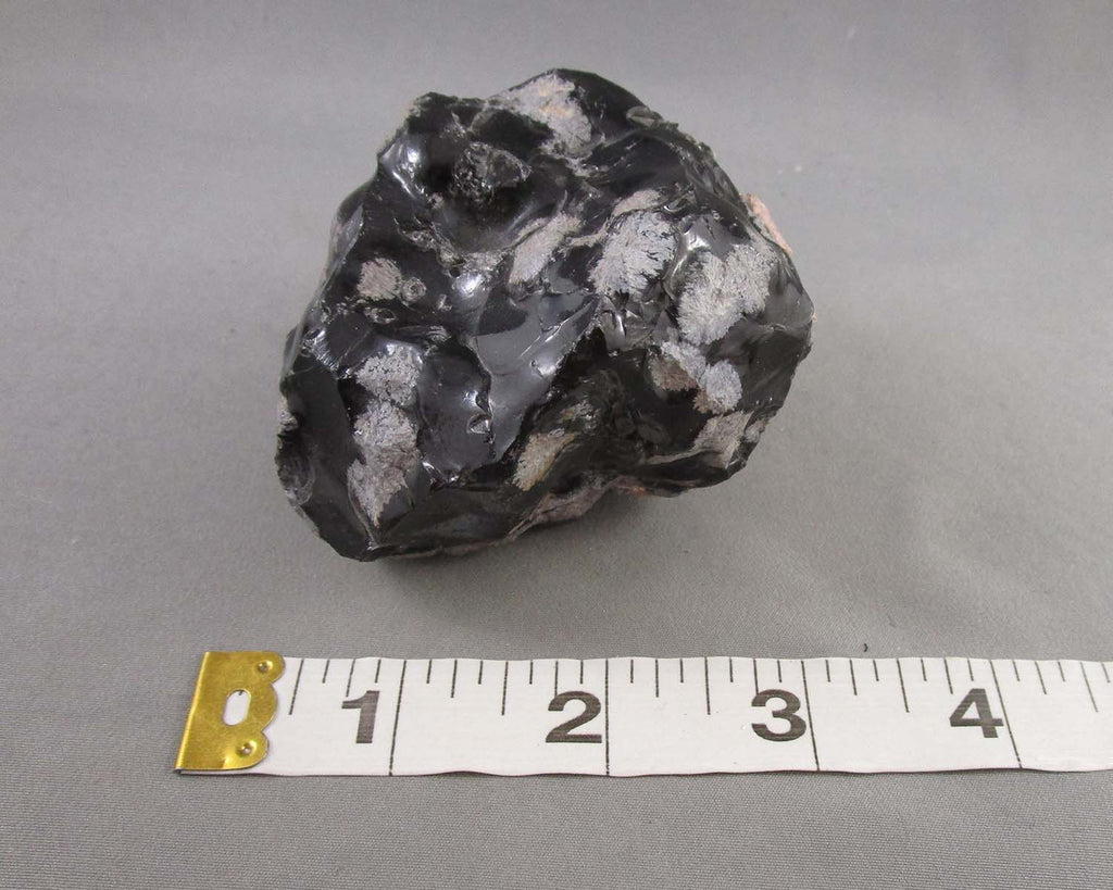 Obsidian is a natural form of volcanic glass. Being a form of glass, Obsidian can break causing sharp edges and was often used for tools and weapons by people long ago. Obsidian is typically black but occasionally two different types of lava flowed together but were so viscous they did not mix completely thus producing different colors as seen in Mahogany Obsidian. Crystals of cristobalite in the lava cause the white specks seen in Snowflake Obsidian.