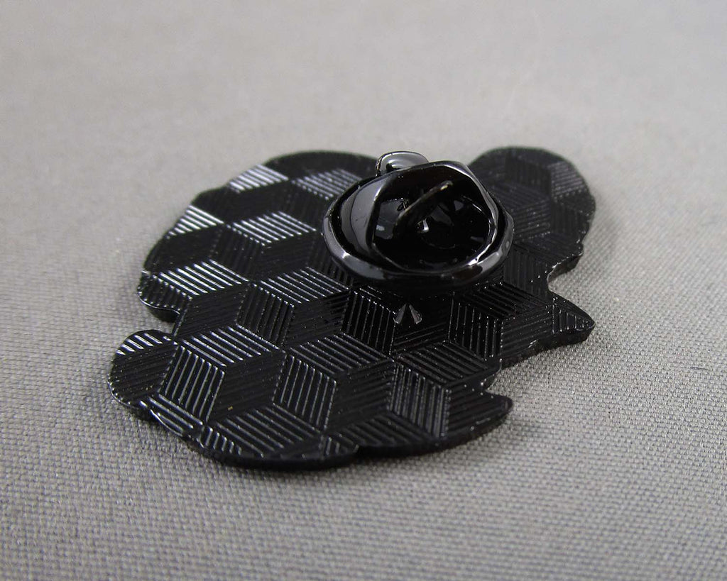 Cat with coffee enamel pin that says "This is Fine". Measurement: 28mm x 29mm.