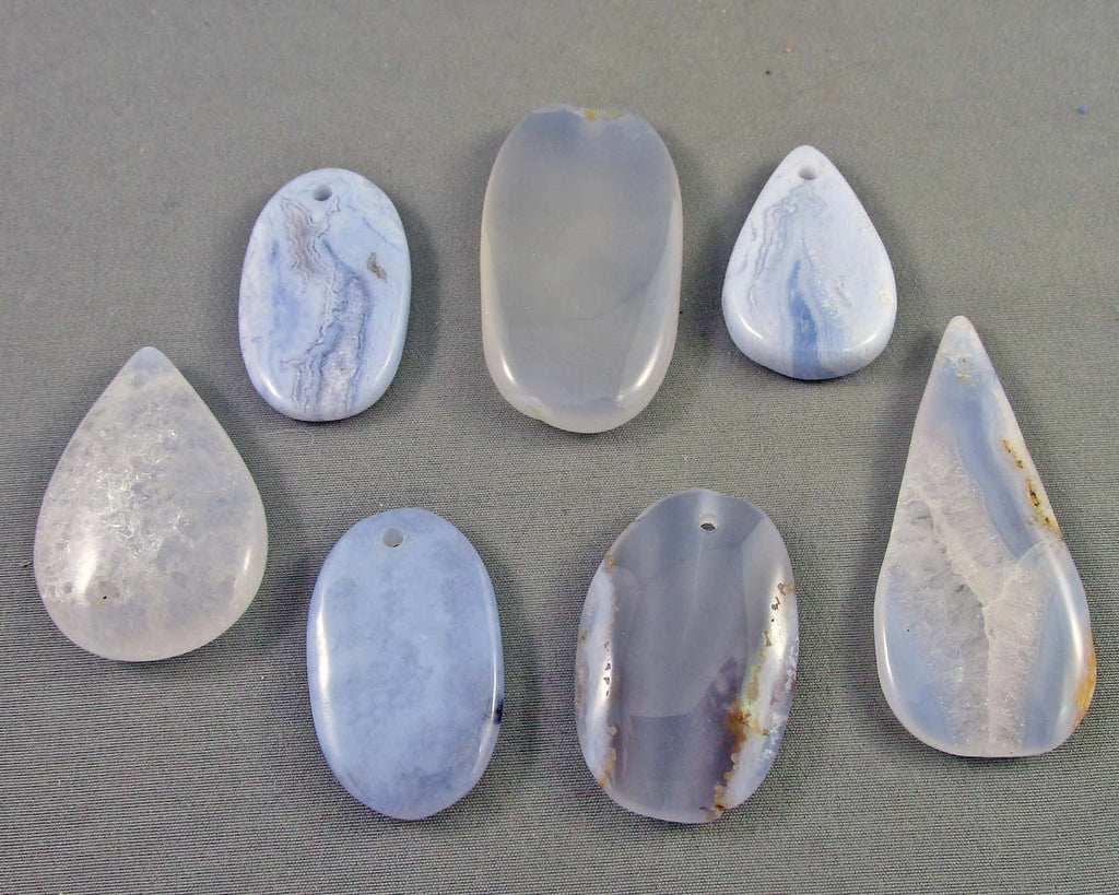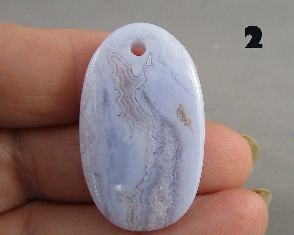 This listing is for your choice of a Blue Lace Agate drilled pendant You will receive the exact pendant pictured beside the corresponding number. The hole in the pendants is 2mm