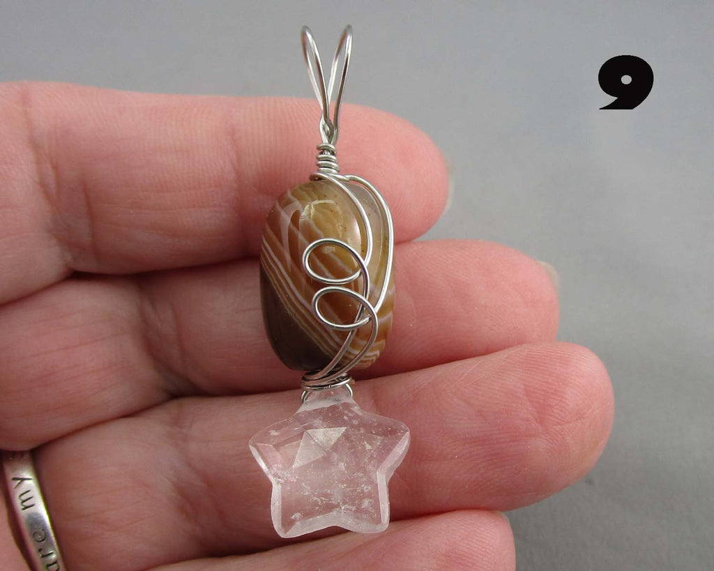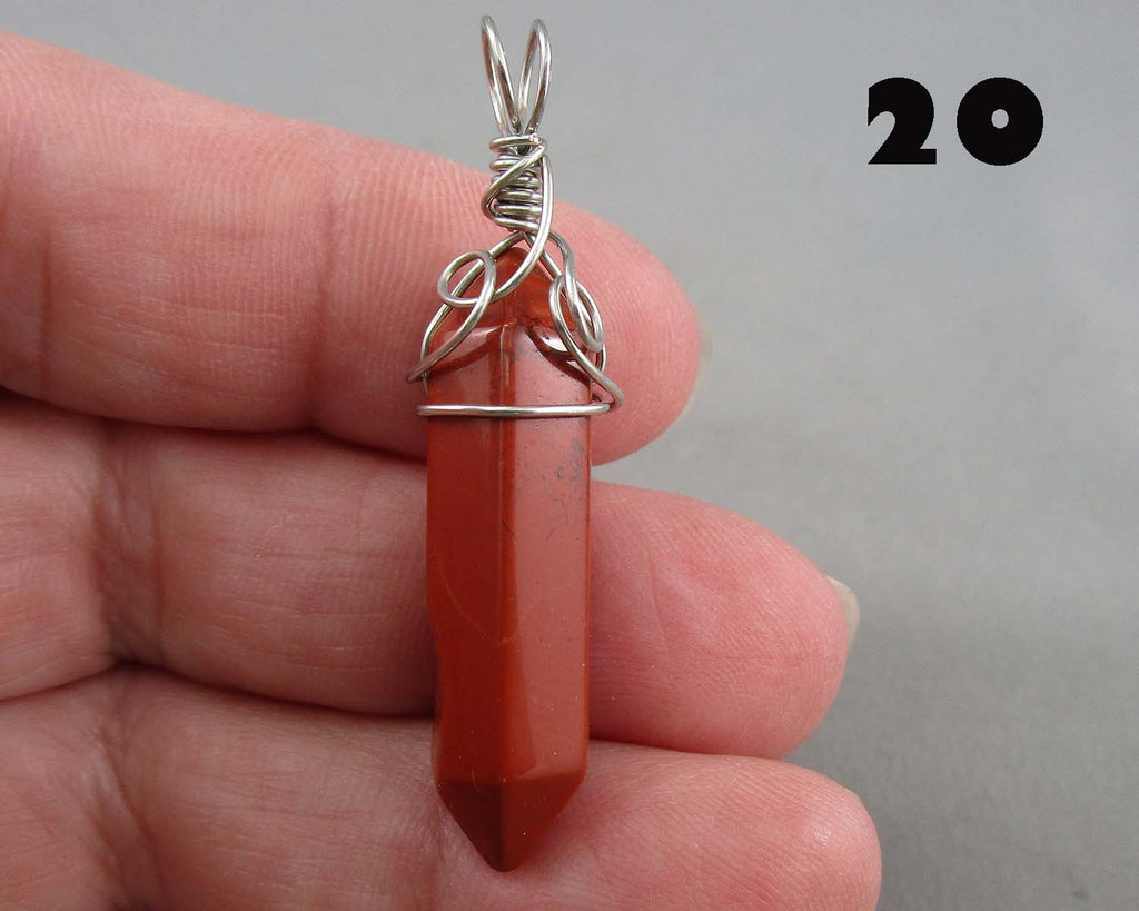 This listing is for your choice of a handcrafted gemstone pendant made by our very own Rock Star Tegan!Ā You will receive the exact pendant pictured beside the corresponding number.