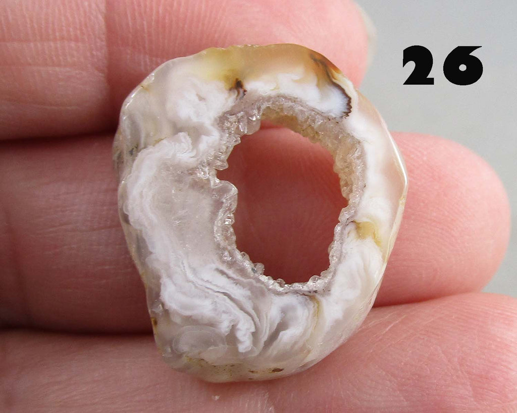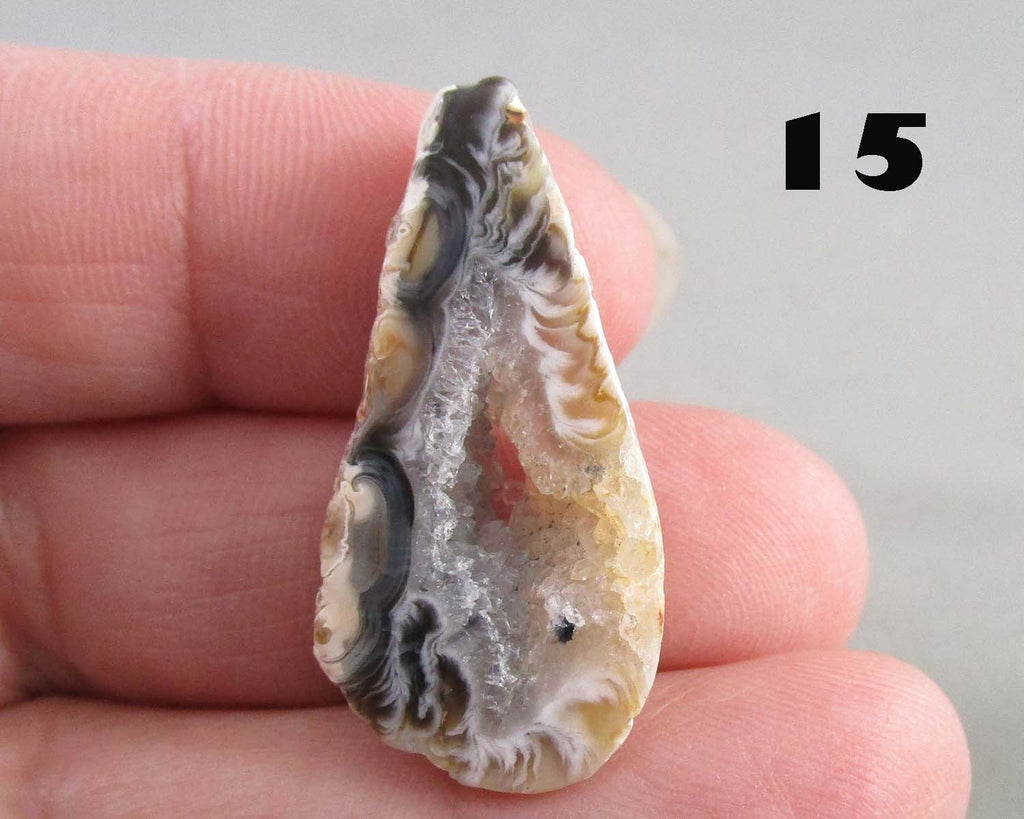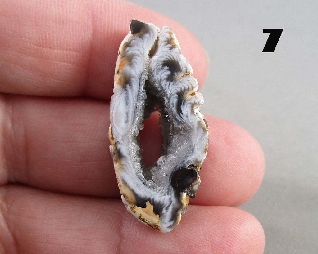 This listing is for a drilled Oco Geode. You will receive the exact geode pictured beside the corresponding number. Geodes range in size from 1" to 1.5". Each geode is drilled with a 1.4mm hole.